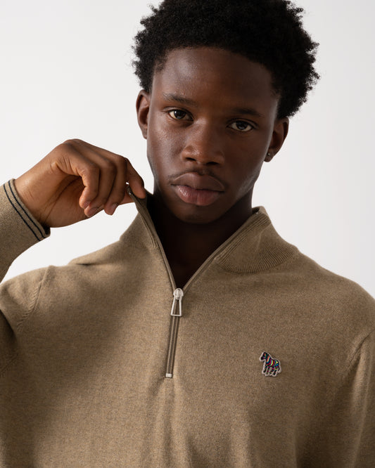 PS Mens Zebra Badge 1/4 Zip Jumper - 64 Camel
