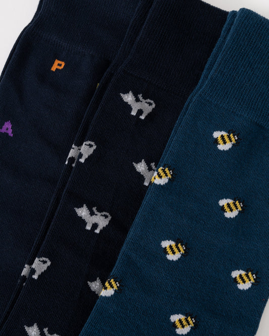 Mens 3-Pack Seas Navy Socks - 1A Mixed Plate 1