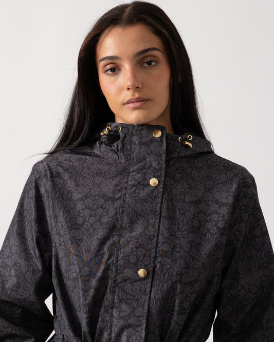 Holkham Womens Packable Printed Raincoat - Navy Floral Tonal