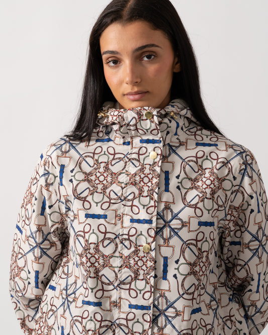 Holkham Womens Packable Printed Raincoat - Navy Stirrup Geo