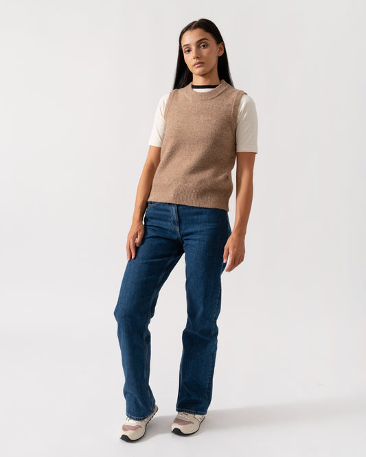 Holly Womens Crew Neck Knit Tank Top - Tan Brown