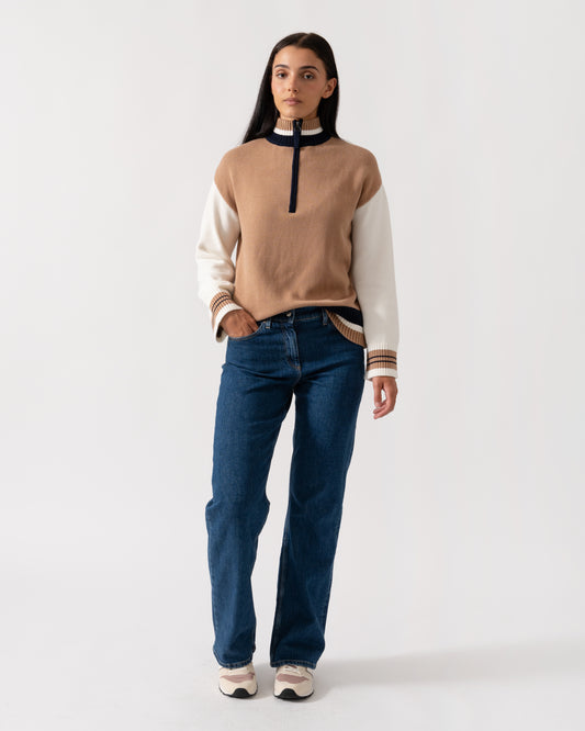 Varsity Zip Womens 1/4 Zip Jumper - Tan Brown