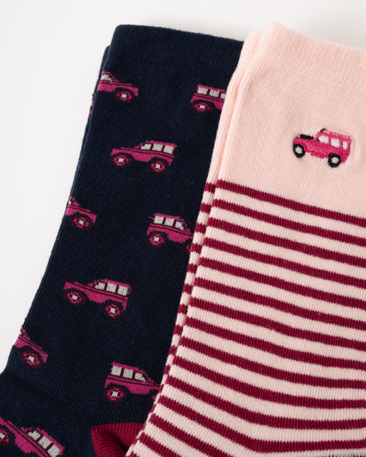 Everyday 2 Pack Womens Socks - Navy/Pink