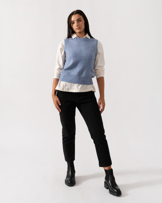 Holly Womens Crew Neck Knit Tank Top - Blue