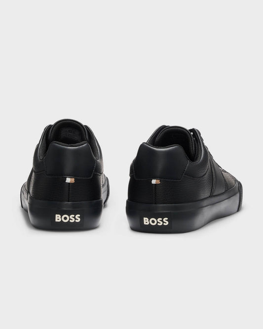Vendor:BOSS Orange Aiden Tenn Mens Faux-Leather Trainers with Plain and Grained Textures - Black 005 - Black 005BOSS Orange