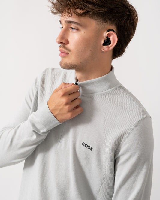 Vendor:BOSS Green Momentum-Lite Mens 1/4 Zip Jumper - Light/Pastel Grey 054 - Light/Pastel Grey 054BOSS Green