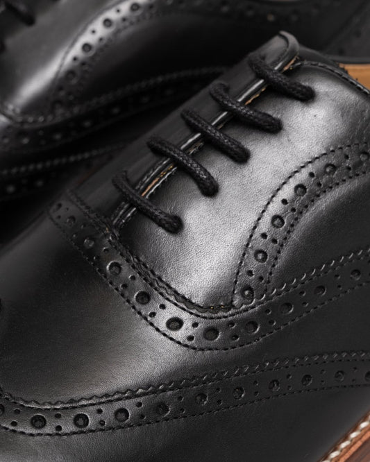 Ledwell Mens Wing Tip Oxford Brogues - Black