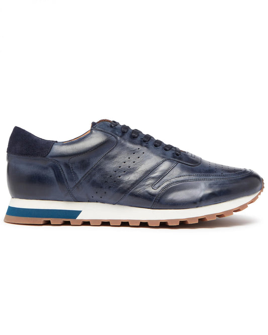 Orjais Mens Hand Washed Calf Leather Trainers - Navy