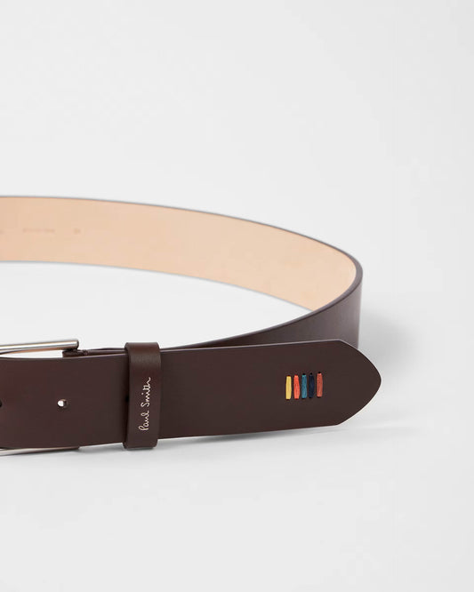 Vendor:Paul Smith Mens Leather Belt with Signature Stripe Stitch Detail - 66 Chocolate - 66 ChocolatePaul Smith