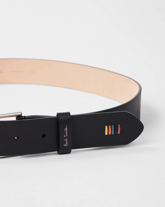 Vendor:Paul Smith Mens Leather Belt with Signature Stripe Stitch Detail - 79A Black - 79A BlackPaul Smith