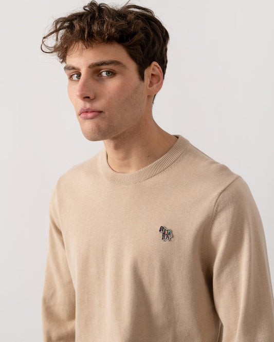 PS Mens Crew Neck Zebra Badge Jumper - 61 Medium Beige