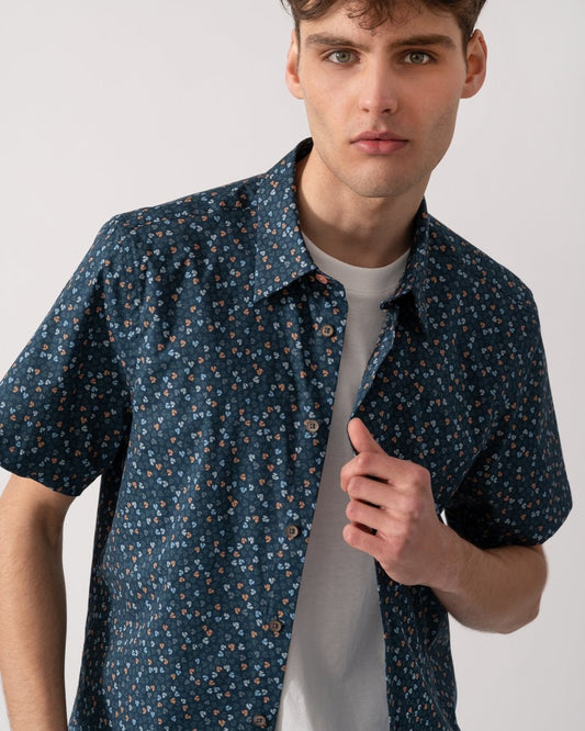 PS Mens Casual Fit Short Sleeve Flowers T-Shirt - 79 Black