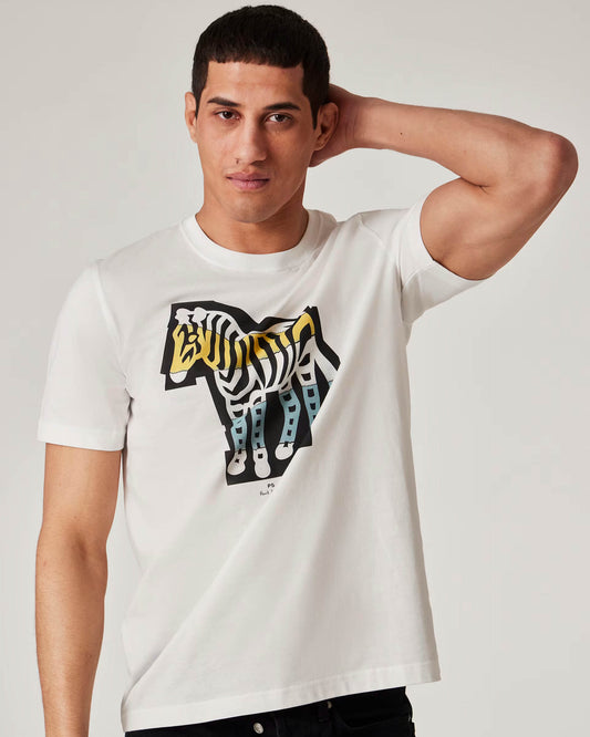 PS Mens Regular Fit Cutout Zebra T-Shirt - 01 White
