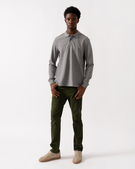 PS Mens Regular Fit Long Sleeve Classic Zebra Polo - 72 Grey Melange
