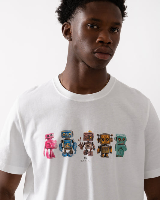 PS Mens Regular Fit Robots Graphic T-Shirt - 01 White