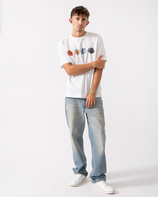 PS Mens Casual Fit Short Sleeve Flowers T-Shirt - 01 White