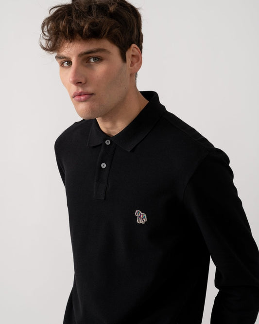 PS Mens Regular Fit Long Sleeve Classic Zebra Polo - 79 Black