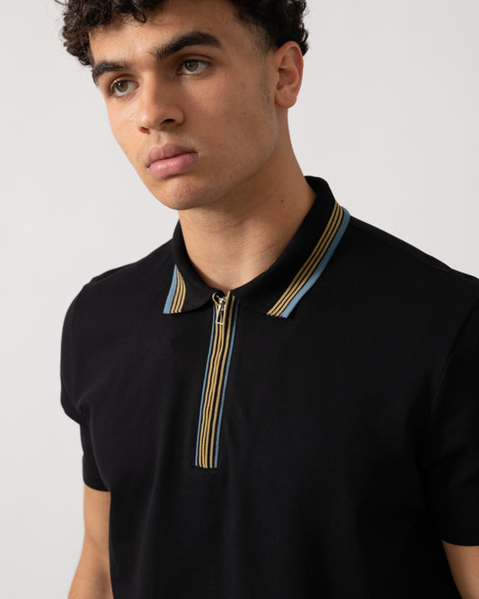 PS Mens Regular Fit Zip Polo with Stripe Tipping - 79 Black