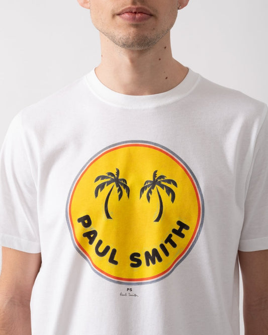 PS Mens Reg Fit Short Sleeve Palm Trees T-Shirt - 01 White