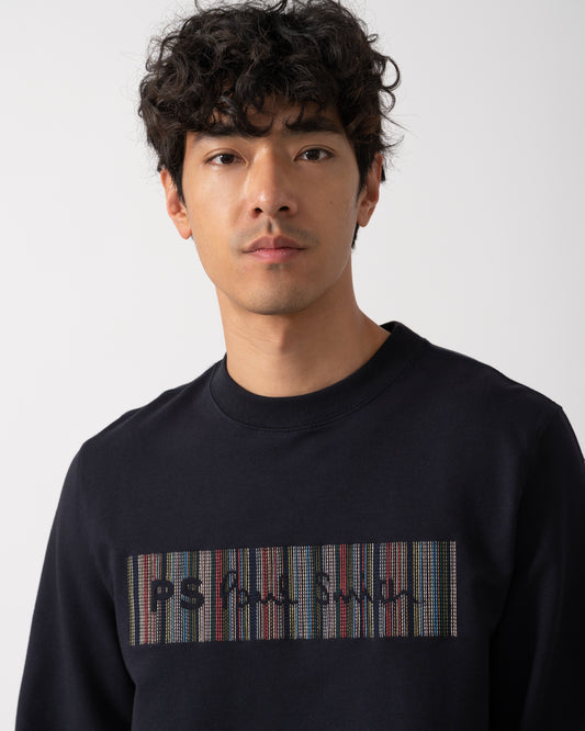 PS Mens Striped Signature Logo Sweatshirt - 49A Very Dark Navy