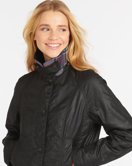 Vendor:Barbour Cropped Beadnell Womens Wax Jacket - Black/Classic - Black/ClassicBarbour