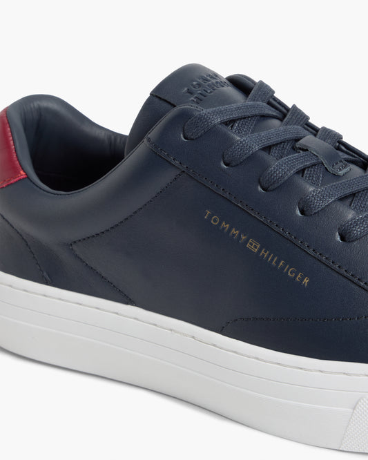 Vendor:Tommy Hilfiger Premium Dress Nappa Leather Mens Cupsole Trainers - Desert Sky/Red - Desert Sky/RedTommy Hilfiger
