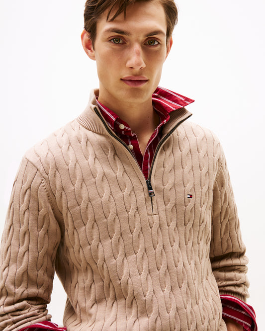 Vendor:Tommy Hilfiger Classic Cotton Cable Mens Half Zip Mock Sweatshirt - Coastal Taupe - Coastal TaupeTommy Hilfiger Classic Cotton Cable Mens Half Zip Mock Sweatshirt - Desert Sky - Desert SkyTommy Hilfiger