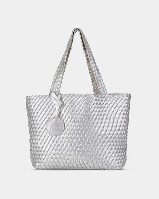 Reversable Dual Colour Womens Braided Shopper - Milk Creme Silver 121710