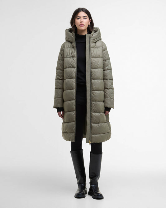 Vendor:Barbour International Olivios Womens Longline Puffer Jacket - Dusky Khaki - Dusky KhakiBarbour International