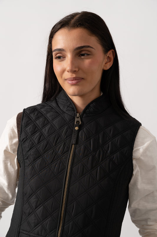Lydia Womens Diamond Quilt Gilet - Black/Classic Tartan