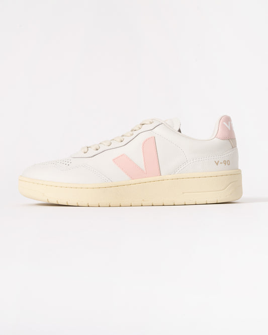 Veja V-90 OT Leather Womens Trainers - White/Petale
