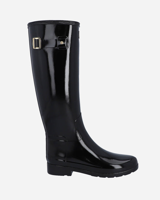 Womens Refined Gold Trim Tall Gloss Boot - Black