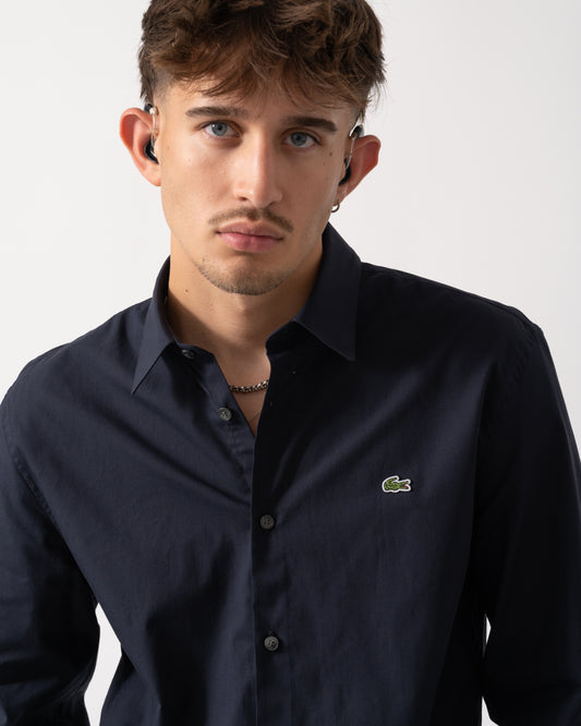 Mens Slim Fit Long Sleeve Poplin Shirt - 410 Marine