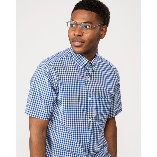 Mens Regular Fit Short Sleeve Poplin Gingham Shirt - 436 College Blue