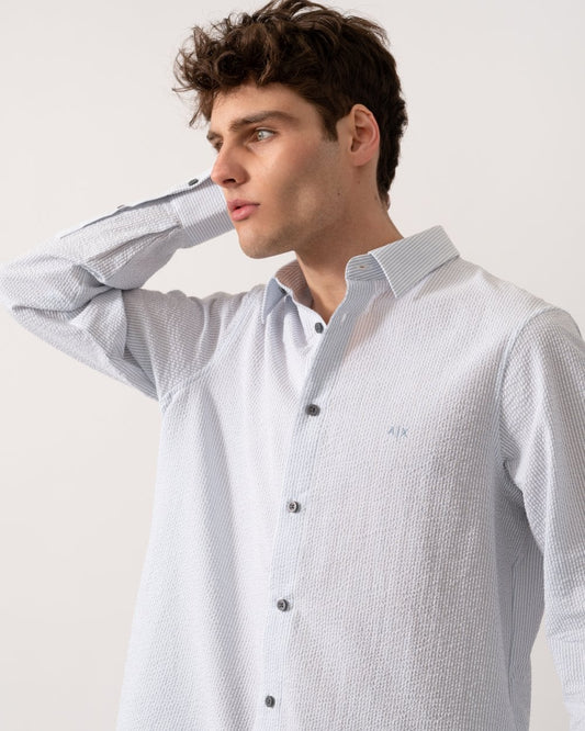 Mens Regular Fit Seersucker Shirt - Ashley Blue/Off White MB004