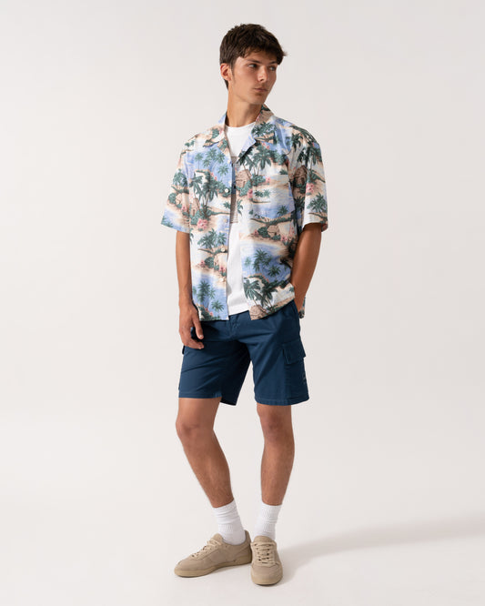 Mens Resort Island Print Short Sleeve Shirt - 419 Perfect Blue