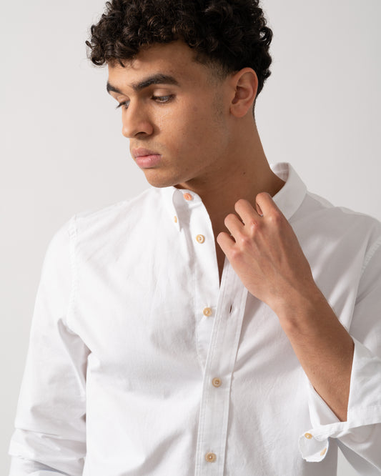 Mens Slim Fit Long Sleeve Poplin Shirt - 110 White