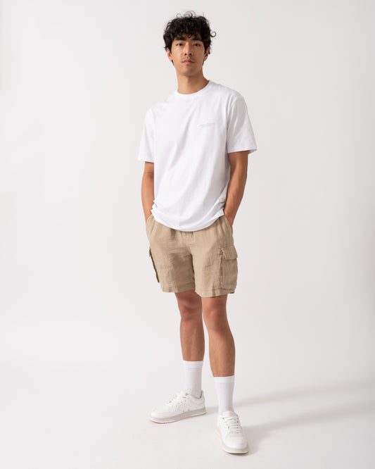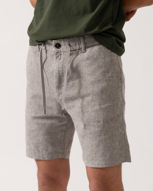 Mens Regular Fit Drawstring Linen Cargo Shorts - 270 Concrete Beige