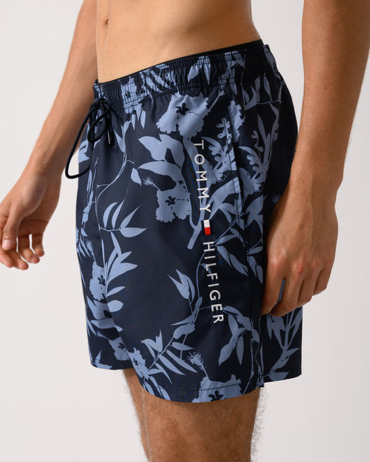 Medium Drawstring Leaf Print Mens Swim Shorts