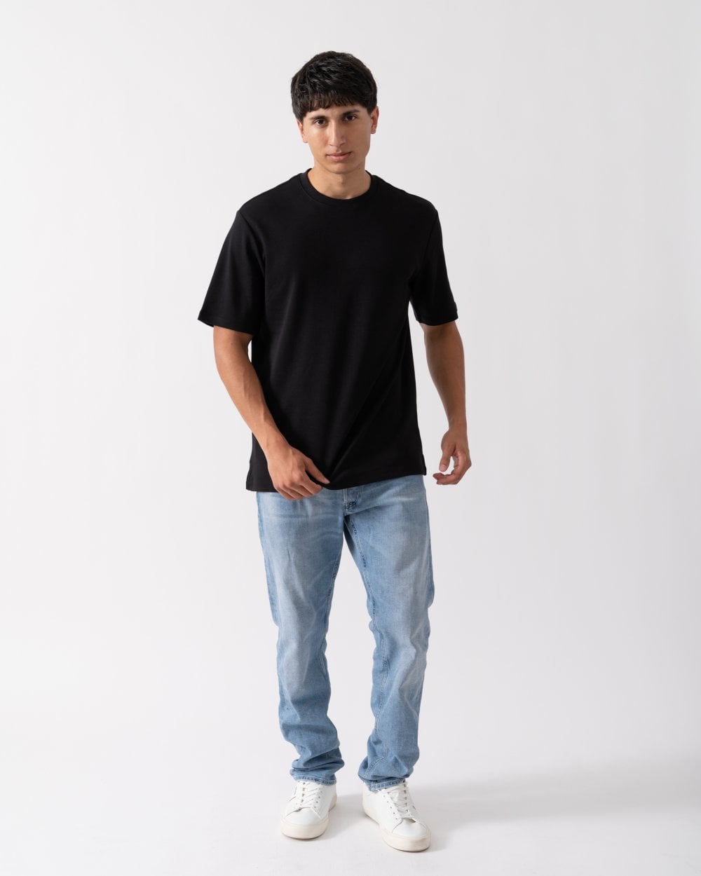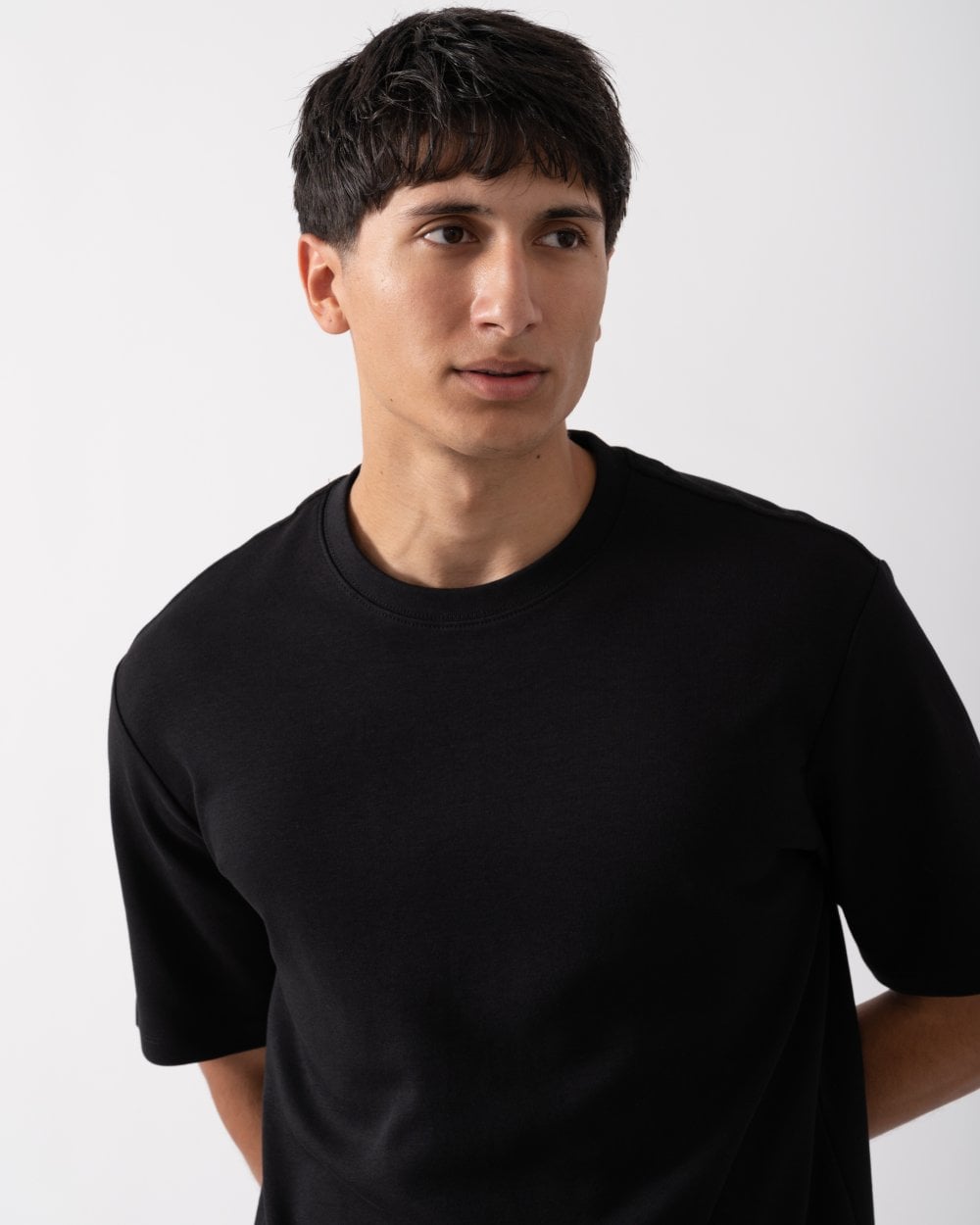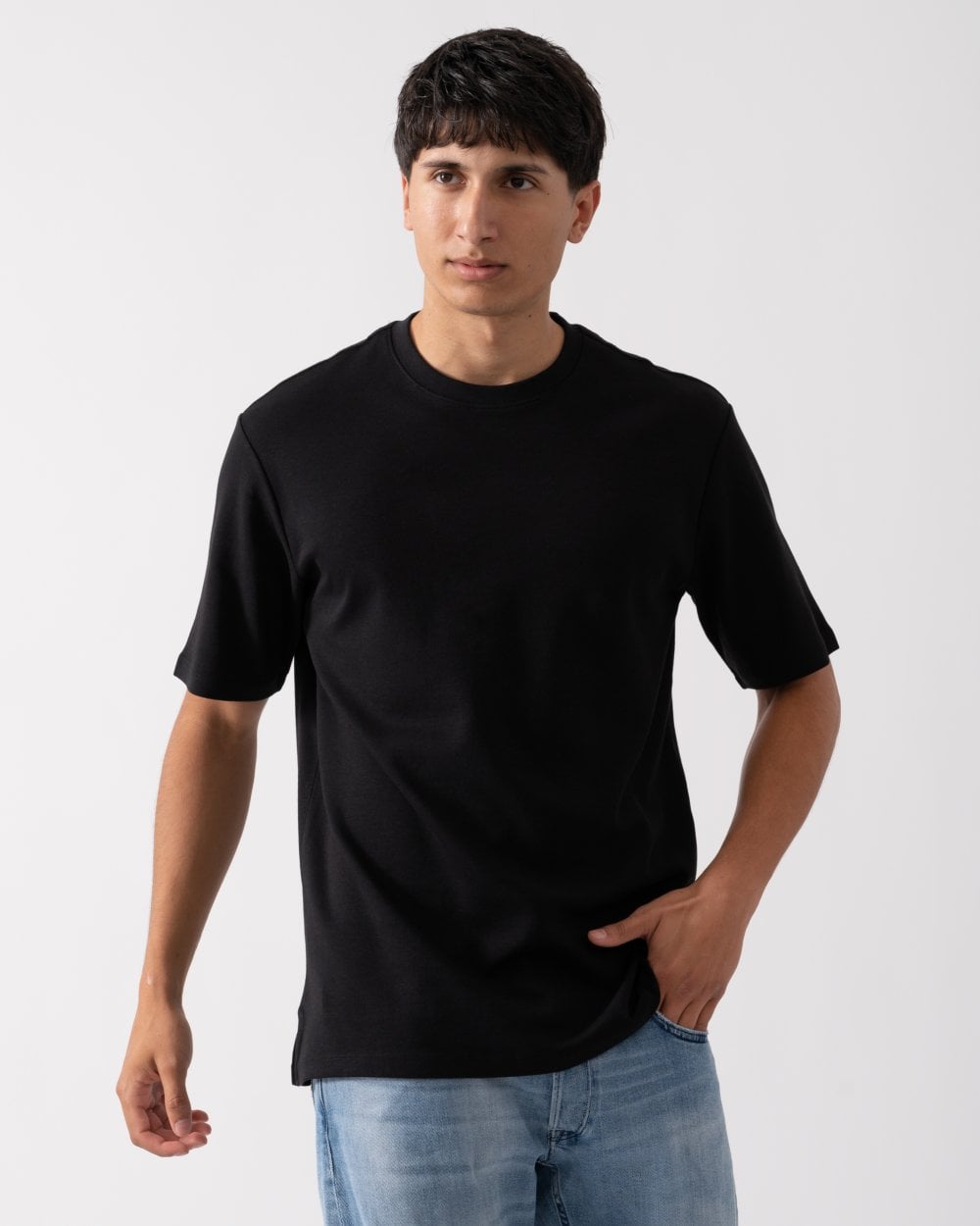 The best selling Palmela T shirt is made from a 240gsm 100% cotton interlock knit; a double knit jersey with a heavier weight. This classic white T shirt has a brushed feel in a thicker cotton, designed to keep its shape and softness wash after wash.