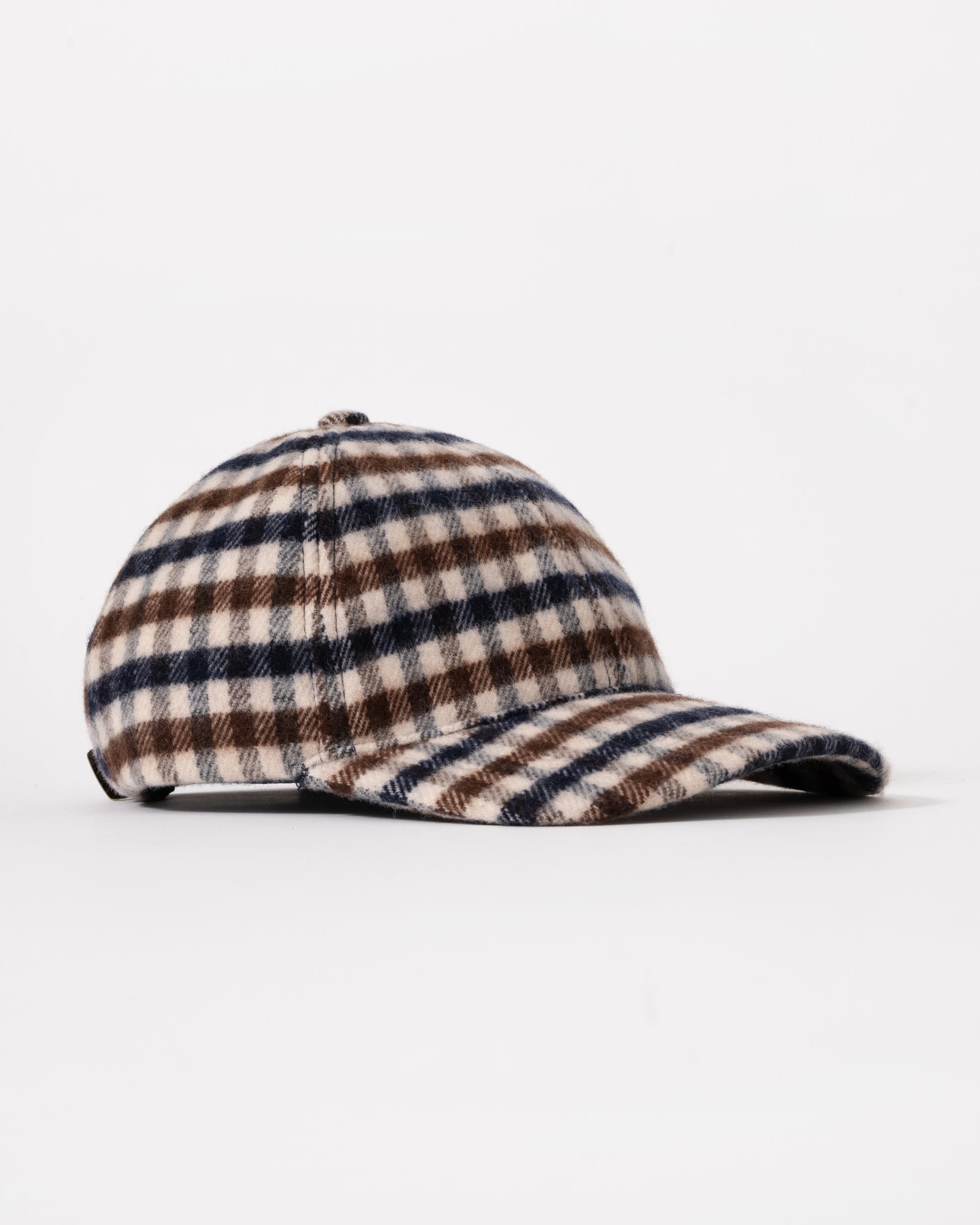 A nice 100% Merino Wool baseball cap, Macro Club Check knitted, treated with a spray coating to give a Durable Water Repellent feature to the article. Fabric woven logo pinch tag is situated on the reverse.