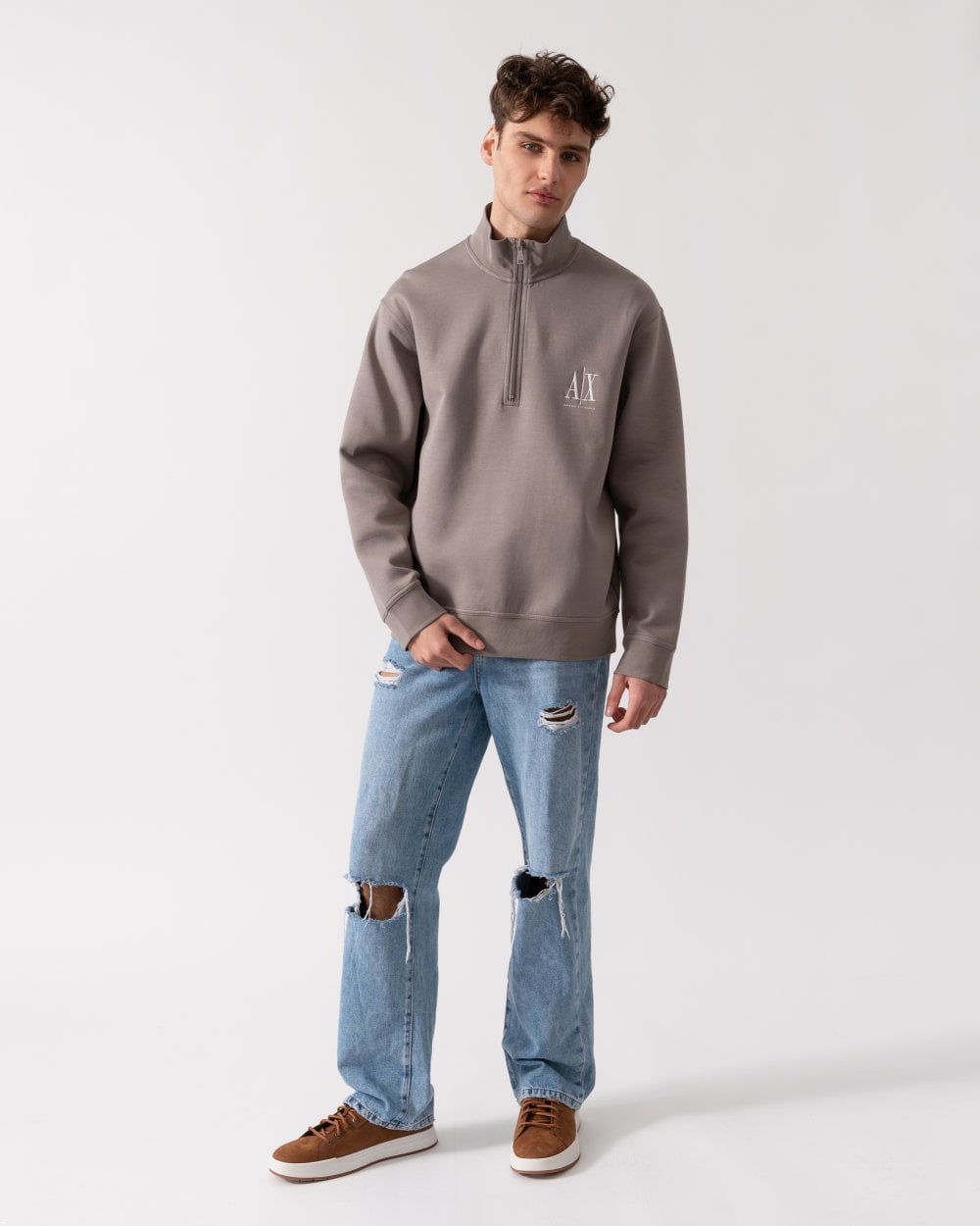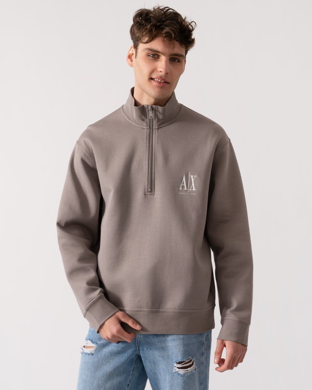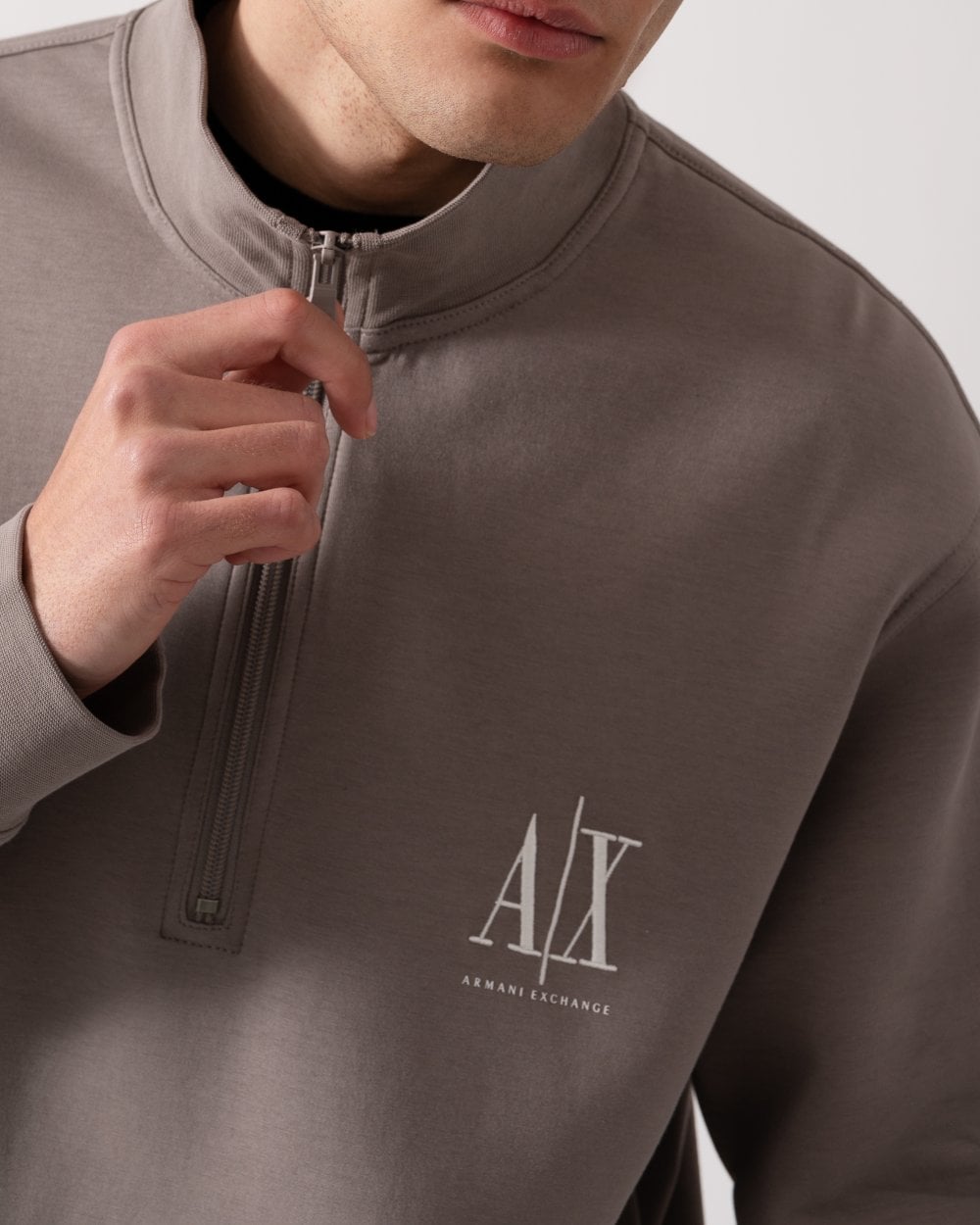 Armani Exchange Mens Embroidered A|X Logo 1/4 Zip Sweatshirt in Driftwood U6107