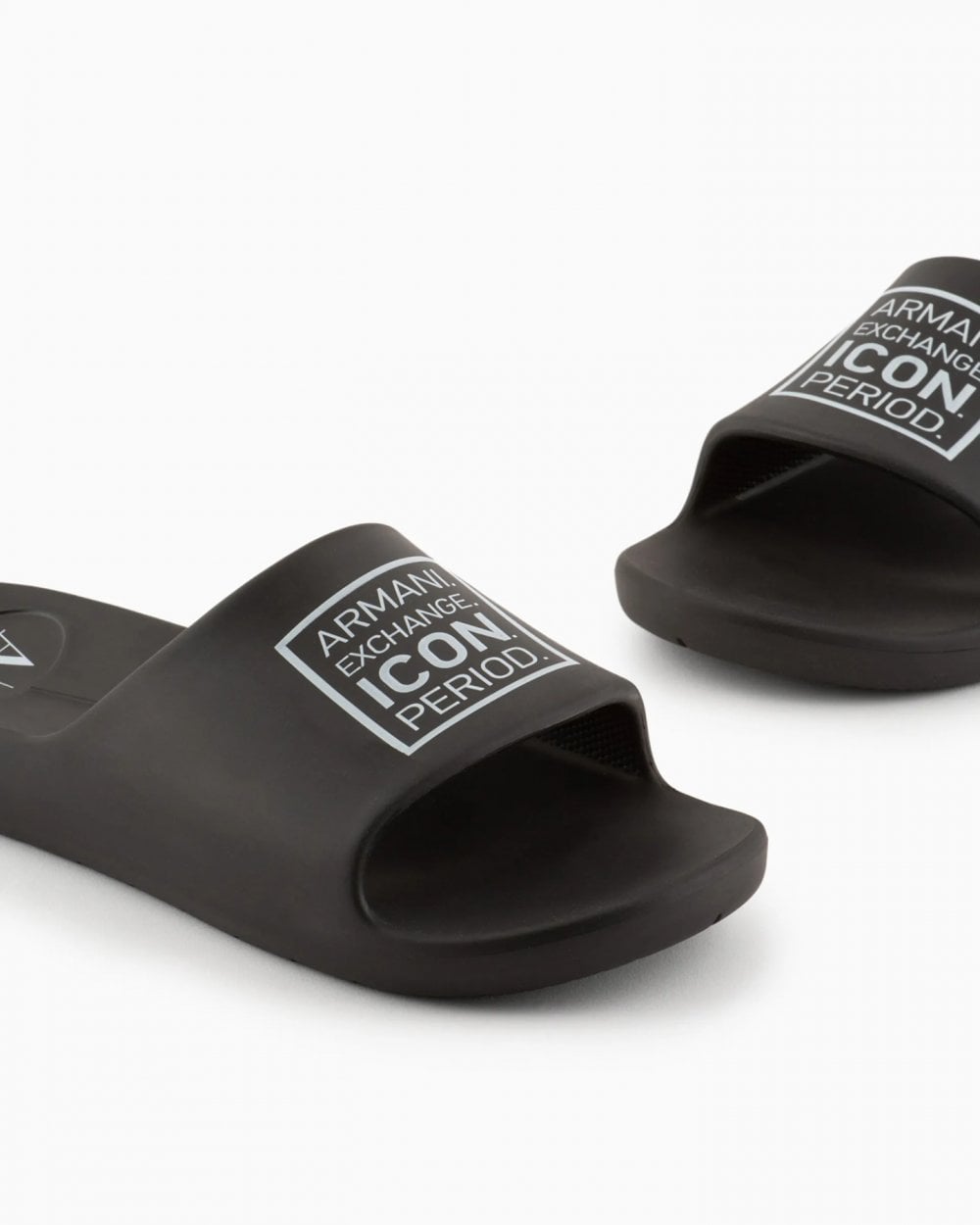 Designed with a soft mateiral that cushions your step, these slides are made complete with the contrasting icon logo look.