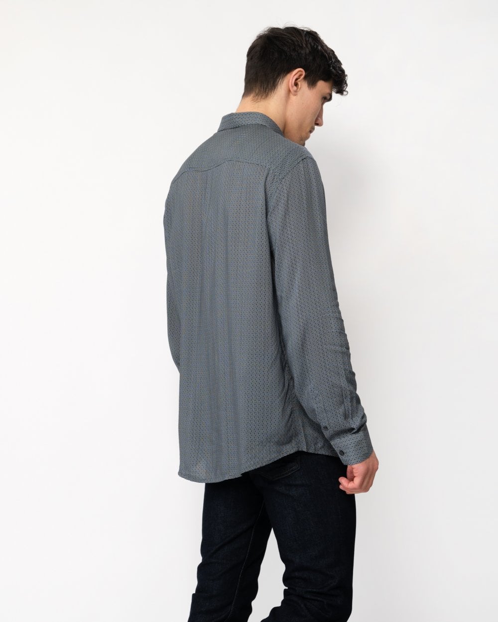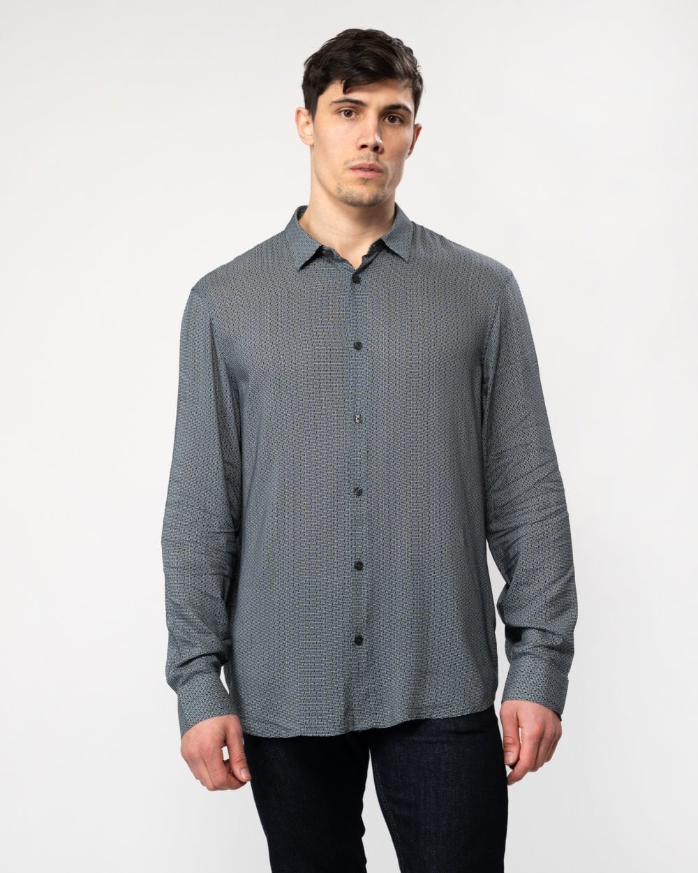Armani Exchange Mens Long Sleeve Pattern Print Shirt - W/Quarry Irregular Lines 71BA - W/Quarry Irregular Lines 71BA