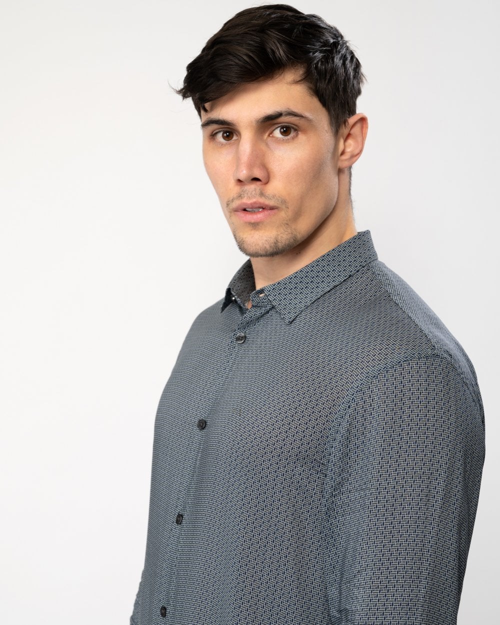 Mens Long Sleeve Pattern Print Shirt - Urban Chic Geometric Brick 7801