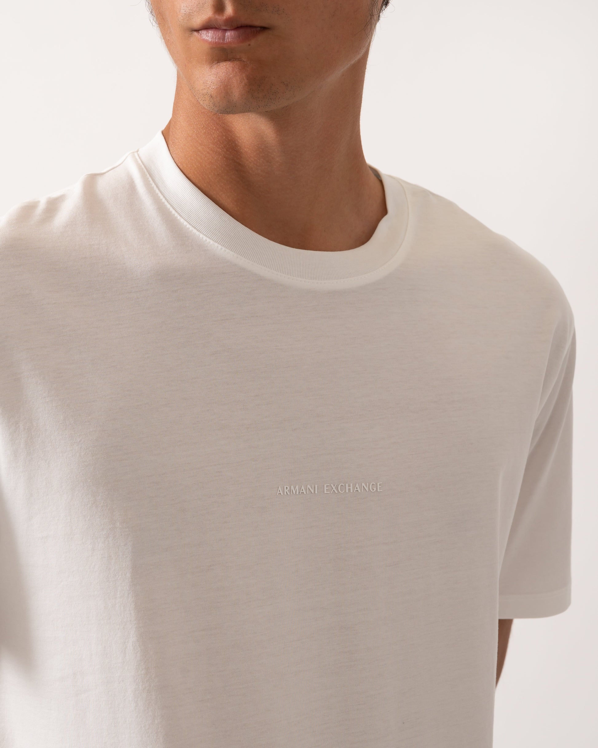 Armani Exchange Mens Regular Fit Mercerised Cotton T-Shirt in Off White U0009