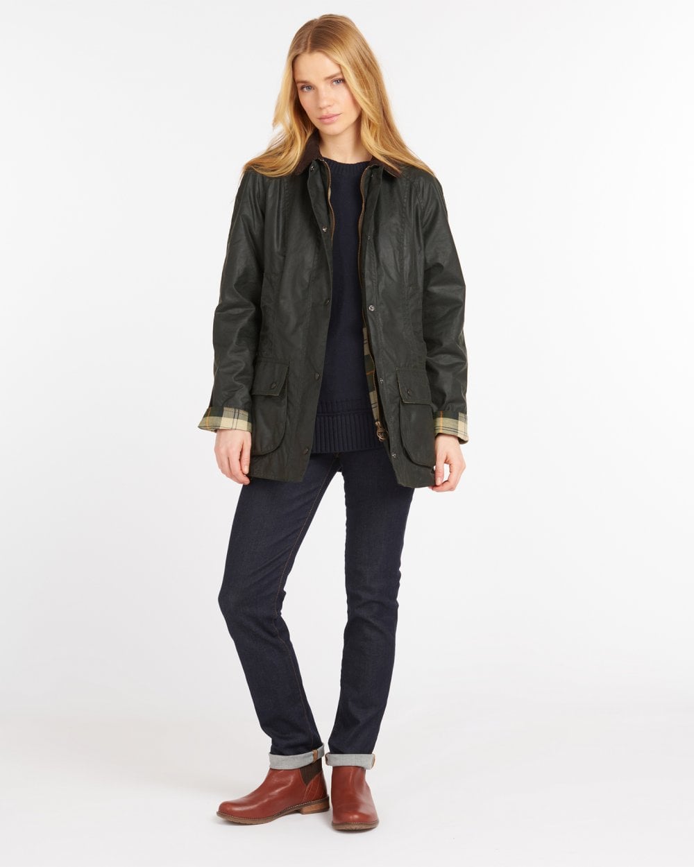 Based on the legendary Bedale but cut to a flattering, feminine silhouette, the Barbour Beadnell Wax Jacket is an iconic style crafted in traditional Thornproof waxed cotton. Boasting a sit-down corduroy collar, classic tartan lining and a wealth of pockets for all your storage needs, several enhancement options are available, including a zip-in liner and a hood, making the Beadnell a versatile, all-season jacket.
