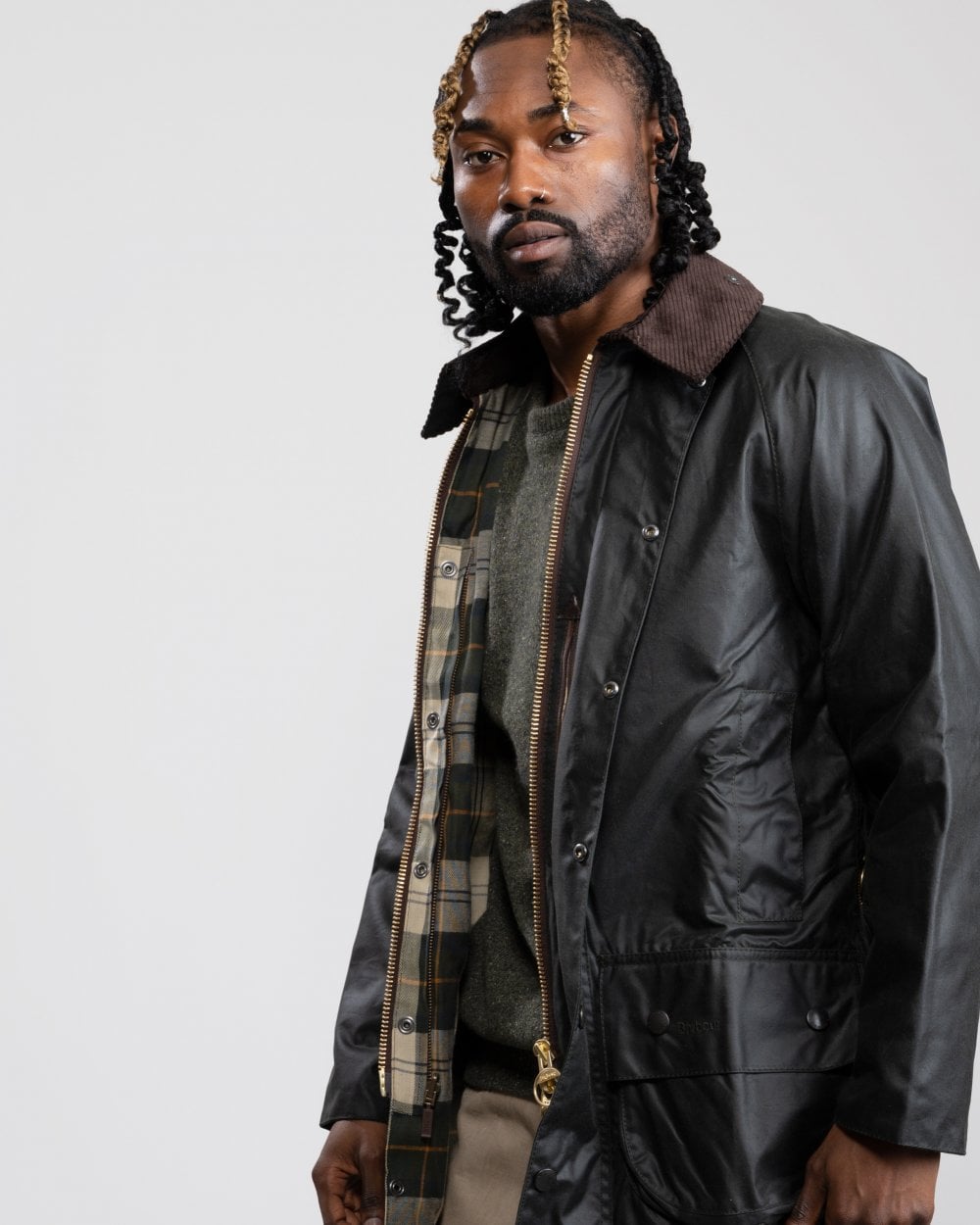 Designed in 1983, the Beaufort Jacket was initially created by Chairman Dame Margaret Barbour and remains one of Barbour's most iconic waxed jackets. Featuring the useful full-width, lined, rear pocket, this jacket is fully interactive with a detachable hood and liner. The Beaufort truly is the ultimate, classic all-year-round jacket which is effortlessly made with medium weight 6oz Thornproof waxed cotton and featuring Velcro wind cuffs and the recognisable studded corduroy collar. The relaxed-fit jacket features a chunky two-way Barbour ring-pull zip and studded 'Stormfly' close front, two generous bellows pockets and two waist-height moleskin hand warmer pockets for everyday practicality. Inspired by French shooting jackets, the Beaufort is a shorter length than traditional jackets, and carries a large rear pocket lined with wipe-clean Nylon. While older Beauforts carry the Dress Gordon tartan, the modern Beaufort is lined with the Classic Barbour tartan, which is based on the tartan sett from the Barbour family's original home county of Ayrshire.