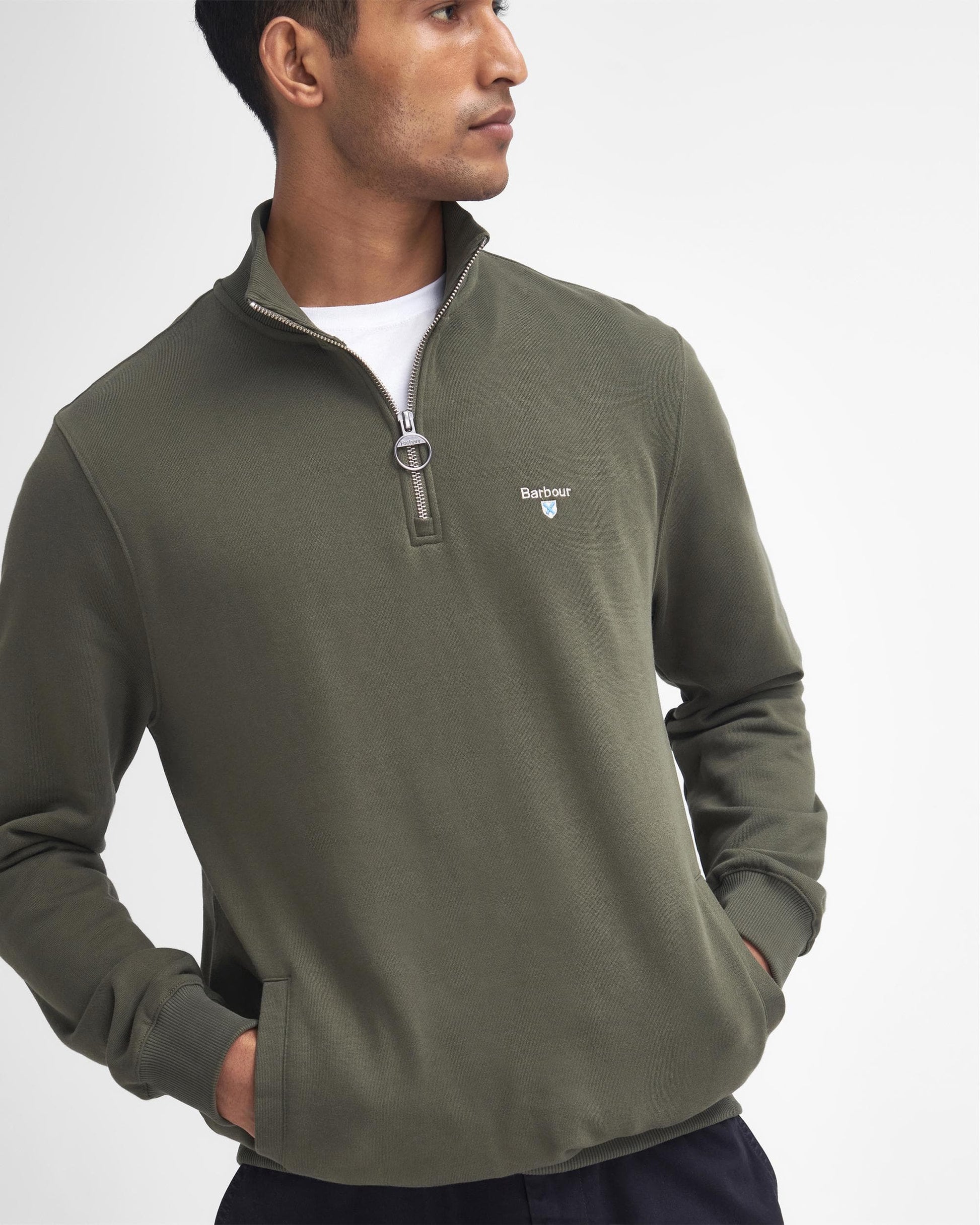 Barbour Beckhill Mens Half Zip Sweatshirt in Mid Olive