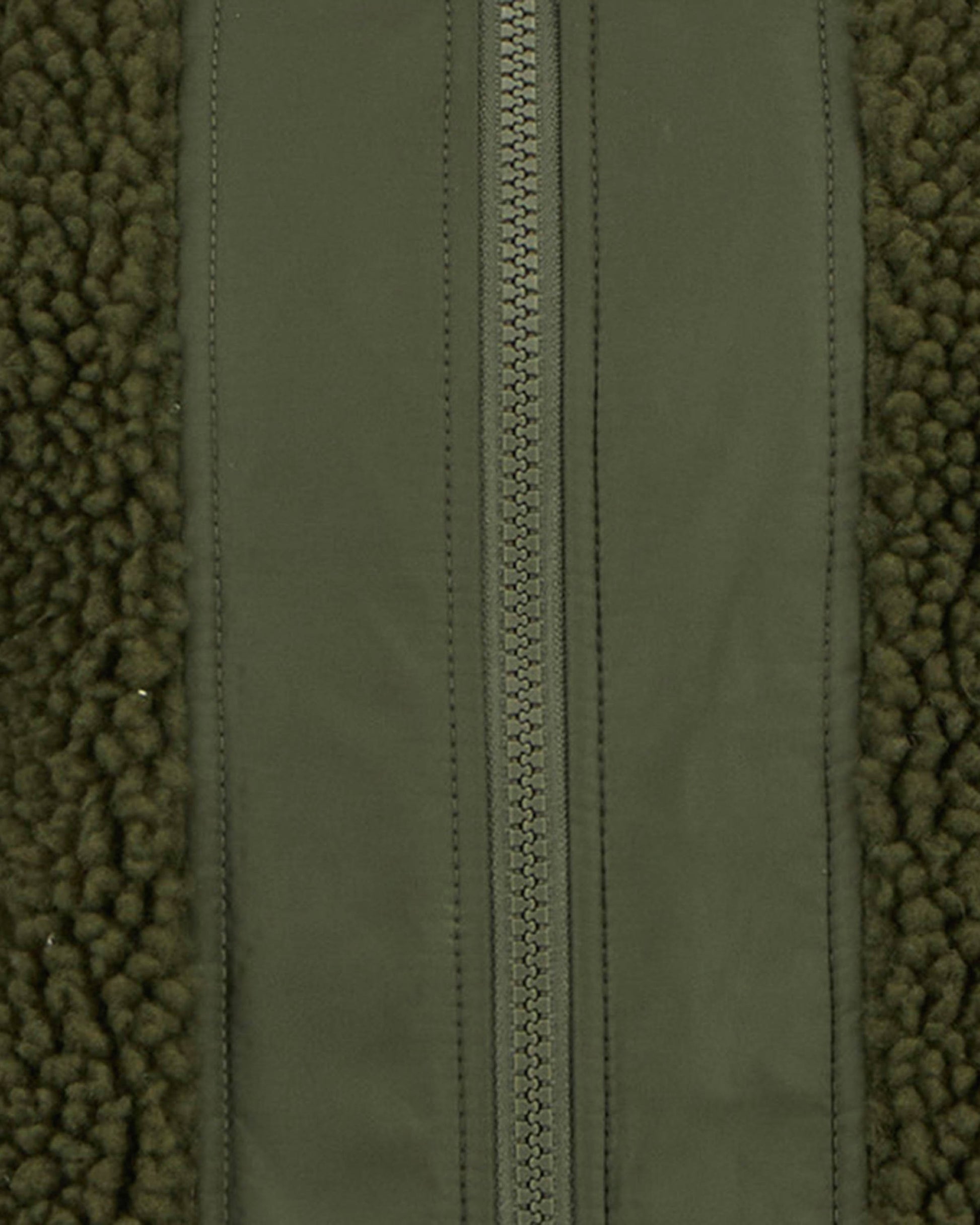 Embrace unparalleled comfort with the Barbour Brawby Fleece Jacket. Crafted from plush teddy fleece and matte quilt fabric, this statement piece features a deep funnel collar for warmth, contrast front panels, and quilted patch pockets. Elevated by Barbour embroidery and an eye-catching oversized ring pull, it brings refined style to crisp, cool days. LFL0083OL51